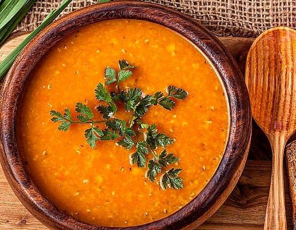 Turkse linzensoep met gebakken sucuk en yoghurt